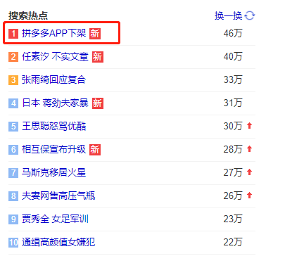 虽然拼多多第一时间对外界做出了回应,但“拼多多”这个名字本身所能够引起的热议性具有相当大的力量。仅仅几个小时,“拼多多被下架”这一话题就挤占了微博热搜、百度热搜等榜首位置。围绕拼多多被下架的原因,多种声音的“狂欢”一直延续到当天深夜。