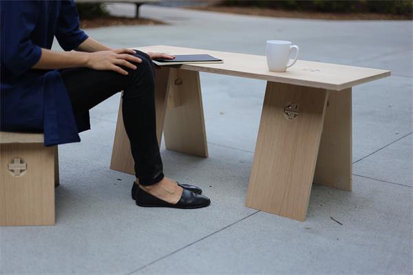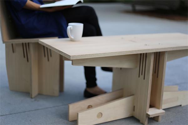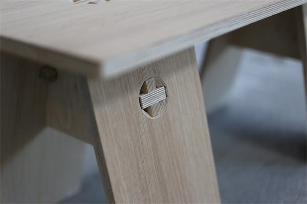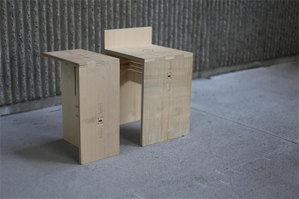 这一系列的家具叫knock-down,设计师Shel Han的灵感来源于积木。拼接板材料采用原浆木板,使拼出来的家具充满原始风格。不论拼装任何家具,都不需要一颗螺丝和钉子,纯碎是利用木搭木的方式使其固定。因此任何家具拼装或拆卸都相当方便,就像拼装积木一样简单。