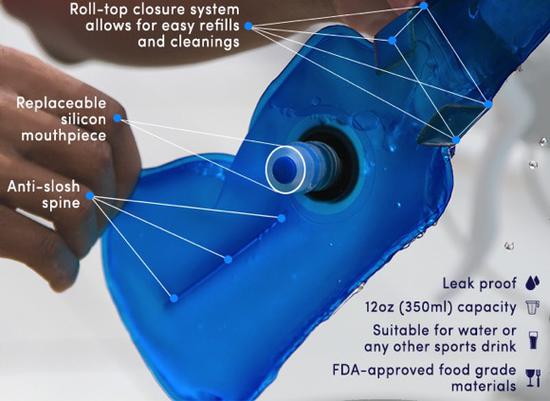 跑步出一身热汗是很健康的生活方式,出汗了自然就要喝水,户外长距离跑步更是少不了要携带一瓶水,挂着一瓶水跑步非常不方便。Wetsleeve 穿戴式水合系统是一个轻便、透气的软袖,能够穿戴在手臂上,并且配有可再充水的水化水箱,让跑步者随时随地都能在手腕上啜饮水,而又感觉不到自己携带了一瓶水。