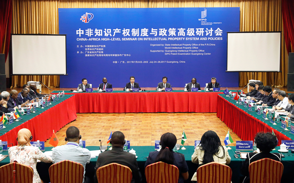 7月24日,中非知识产权制度与政策高级研讨会在广东省举办。中国国家知识产权局局长申长雨、世界知识产权组织特别代表爱德华·夸夸、非洲地区知识产权组织总干事费尔南多·多斯·桑托斯出席开幕式并致辞。广东省人民政府党组成员陈云贤致欢迎辞。中国国家知识产权局副局长何志敏主持开式。