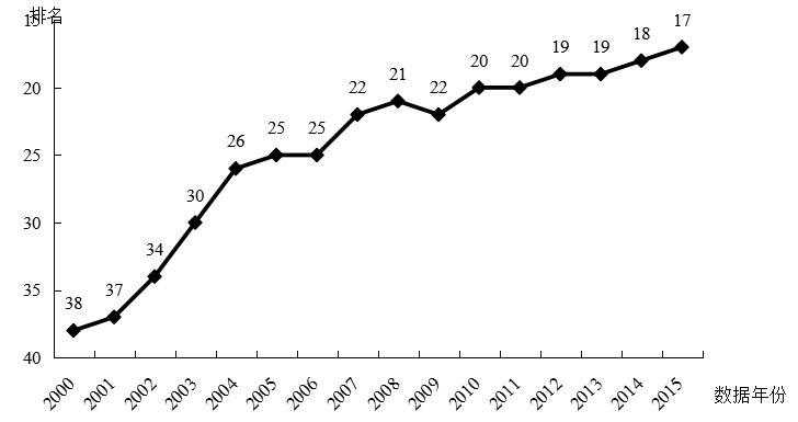 图1 中国国家创新指数排名变化图