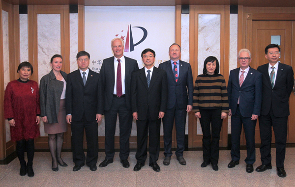 张茂于(左五)在京会见德国机械设备制造业联合会主席卡尔·马丁·威尔克(左四)一行