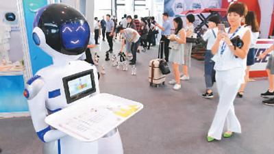 中国-东盟博览会上的机器人服务员。新华社发