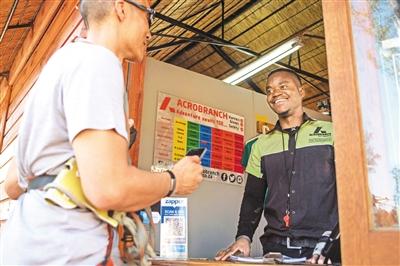 在南非约翰内斯堡,一名游客使用支付宝支付。新华社发