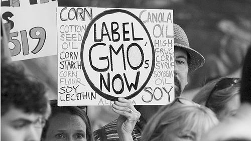 2013年,一项要求对转基因生物制成的食品进行标识的州法律支持者在康涅狄格州集会。
